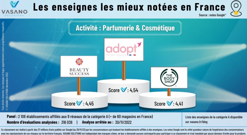 Adopt Parfums s’impose et prend la première place du classement des enseignes les mieux notées en France dans la catégorie Parfumerie …