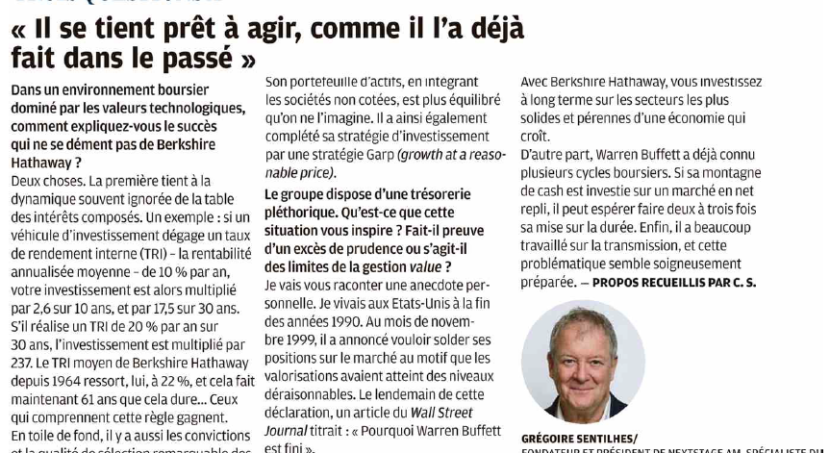 Investir (Les Echos) donne la parole à Grégoire Sentilhes, président et fondateur de NextStage AM, pour décrypter les secrets du …