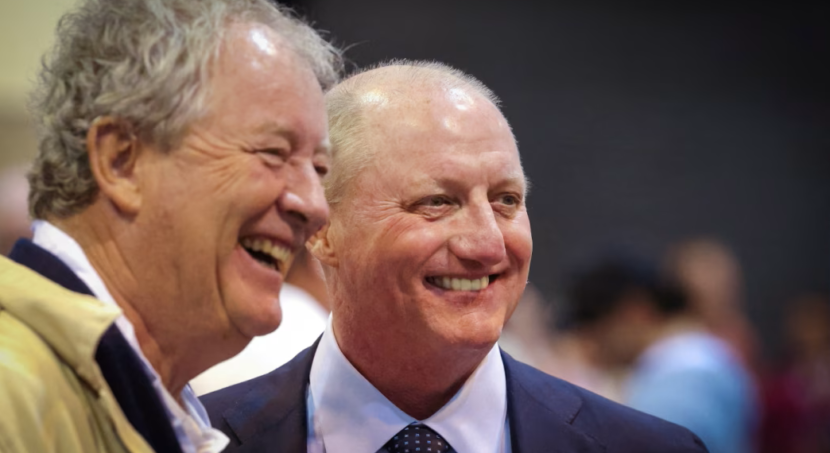 Le vice-président de Berkshire, Greg Abel, pose avec un actionnaire lors de la réunion annuelle des actionnaires de Berkshire Hathaway …