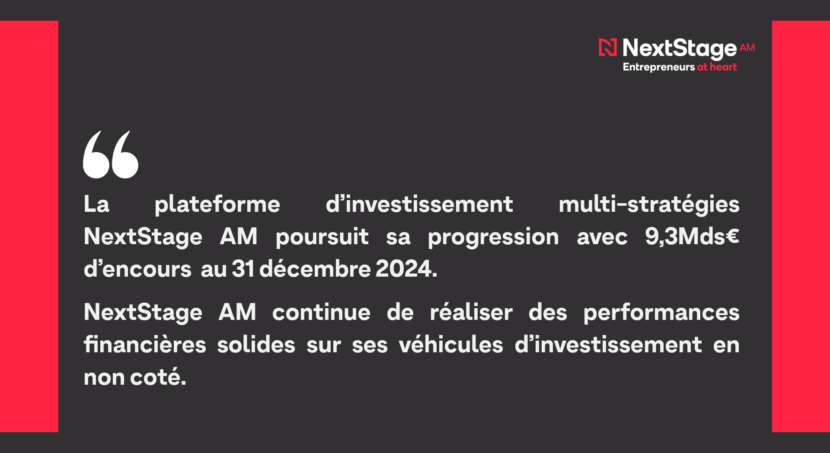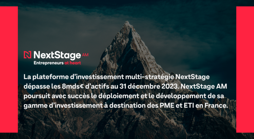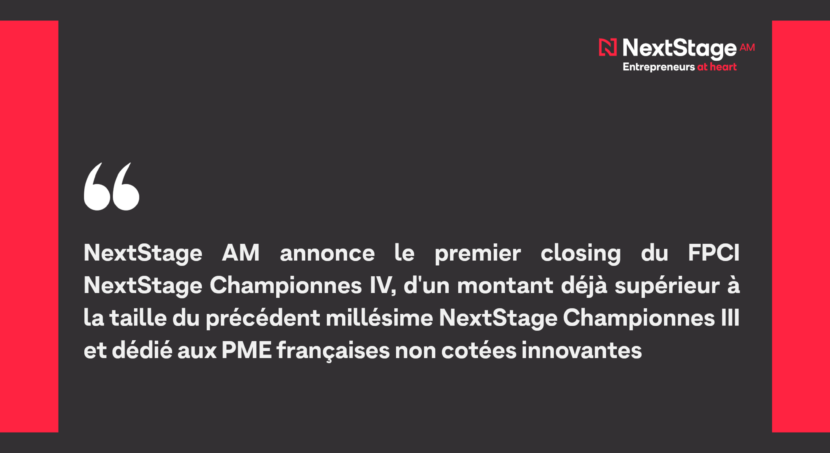 Informations financières : Le contenu de ce site est exclusivement destiné à des investisseurs avertis relevant de l’une des catégories listées à l’article 423-49 du RGAMF et visés dans les règlements des véhicules gérés par NextStage AM. Il ne constitue pas une offre publique de souscription, ni une recommandation d’achat ou de vente de titres financiers. Les informations présentées ne doivent pas être considérées comme des conseils d’investissement personnalisés.