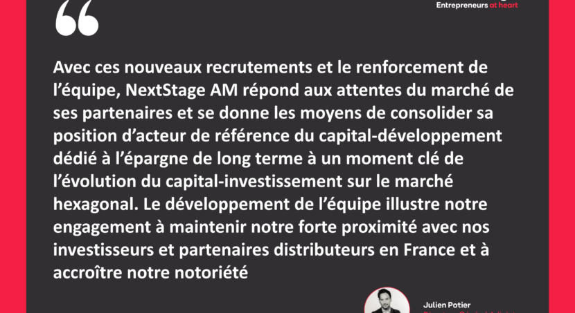 Paris, le 22 septembre 2025 – NextStage AM annonce quatre nouveaux recrutements au sein de son équipe commerciale et marketing …