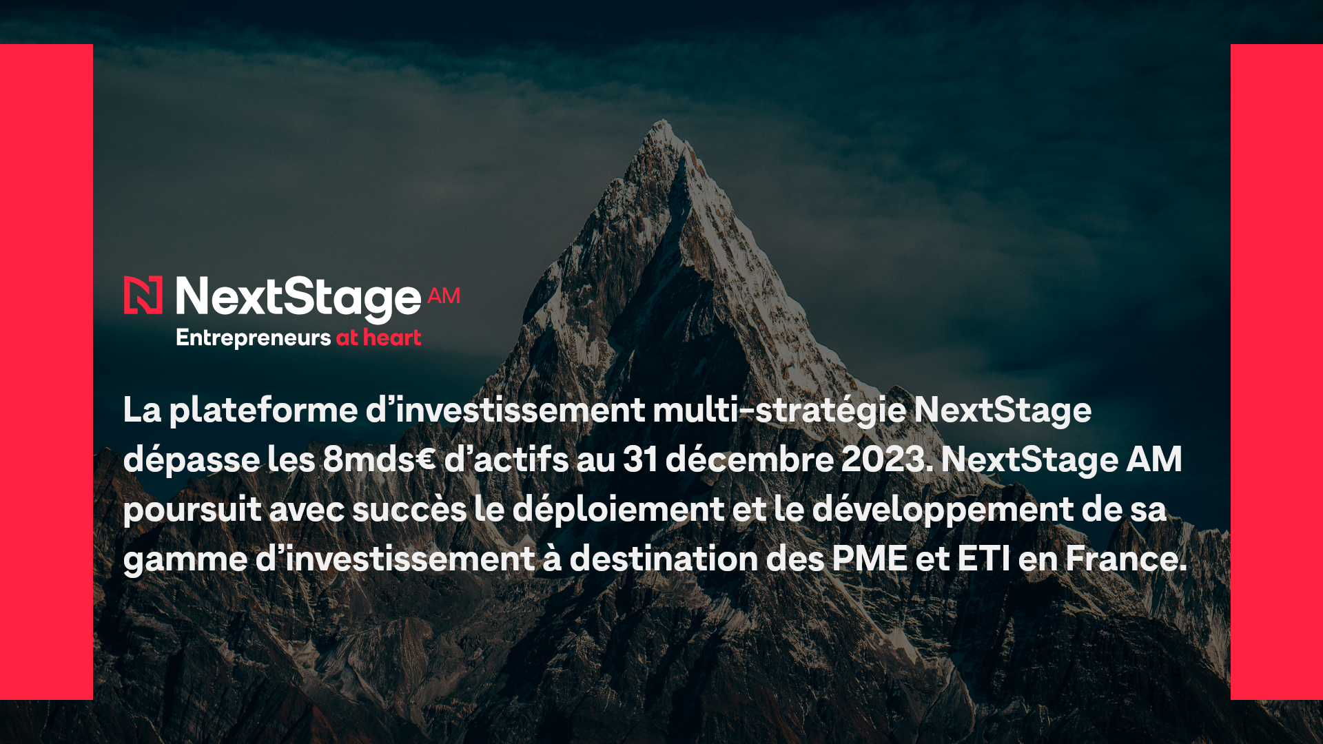 Société de gestion indépendante basée à Paris, agréée par l’AMF, NextStage AM qui cultive depuis l’origine en 2002, une philosophie « d’entrepreneurs-investisseurs », est l’un des pionniers et leaders du capital développement innovant et patient en France. NextStage AM a développé étape par étape, une plateforme de Private Equity, multi-stratégie qui représente en termes d’encours, gérés et conseillés, au 31 décembre 2023, directement et indirectement, près de 8 Mds€. NextStage AM investit dans un nombre limité de PME et ETI (82 sociétés en portefeuille au 31/12/2023), françaises et européennes, innovantes, et de croissance, auxquelles elle apporte une expertise entrepreneuriale d’investisseur et un accompagnement opérationnel fort pour réussir leur transformation. NextStage AM accompagne dans la durée ces PME & ETI inscrites dans la santé intelligente, l’innovation environnementale et la transformation digitale. Elle leur donne les moyens d’accélérer leur développement et leur capacité d’innovation pour devenir les « Championnes » de leurs marchés, tant en France qu’à l’international, par croissance organique et/ou externe.