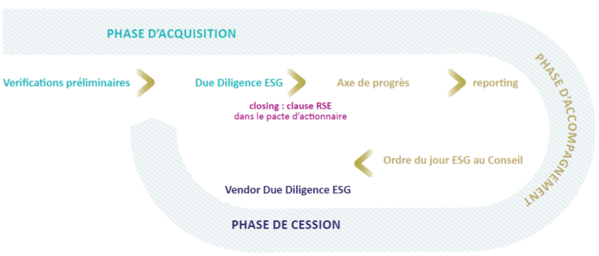NextStage AM intègre une approche ESG dans le cadre de ses activités d’investissement dans le non coté, et ce aux différentes étapes du cycle d’investissement :