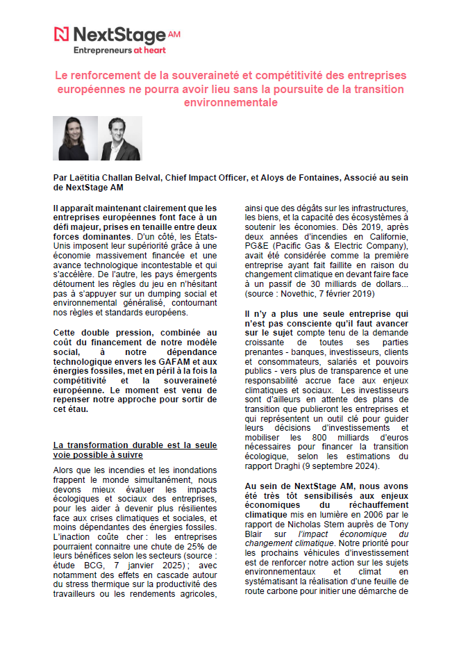 Chaque année, les équipes NextStage AM produisent un rapport avec le soutien des entrepreneurs du portefeuille. Découvrez nos rapports ESG coté 2023/24 et non coté 2024/25 !