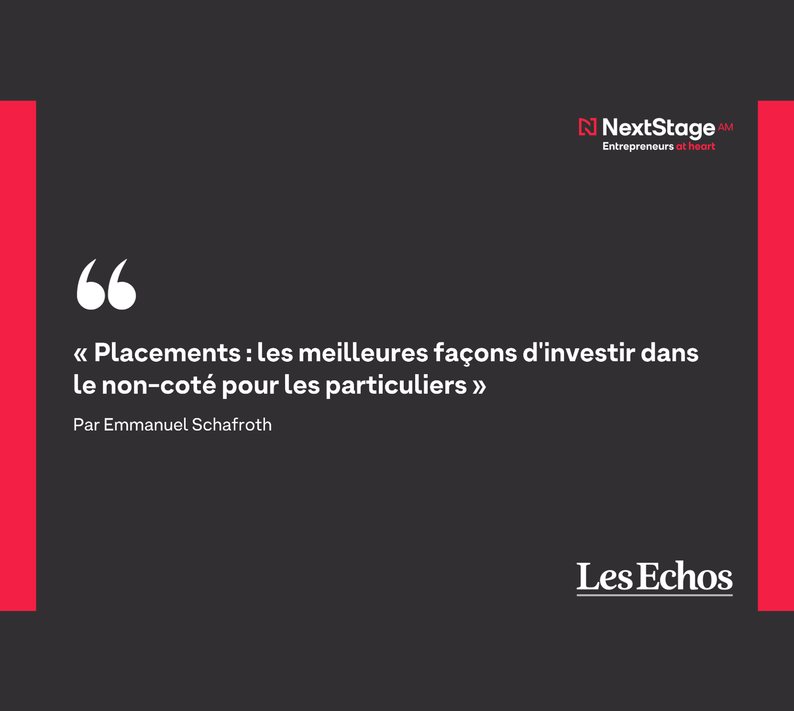Les Echos consacrent un décryptage aux meilleures façons d’investir dans le non coté pour les particuliers, notamment à deux offres complémentaires de NextStage AM :