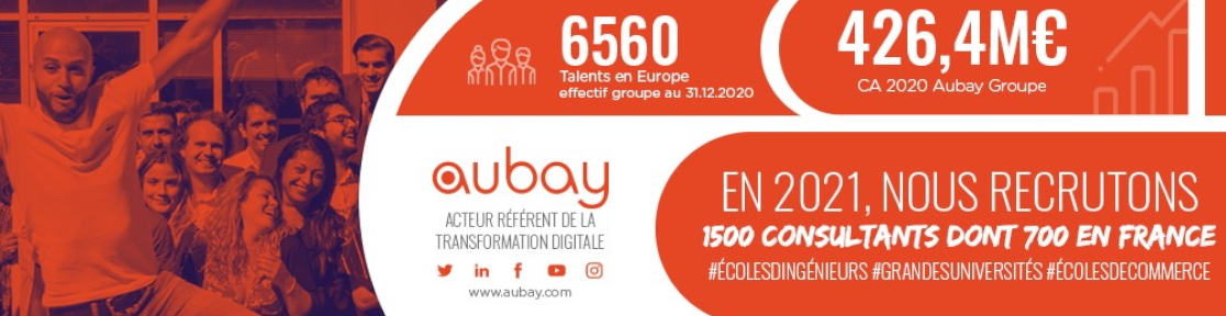 Aubay est une Entreprise de Services du Numérique (ESN). Aubay est présent chez les plus grands acteurs des secteurs Banque (41% du CA : Société Générale, BNP Paribas, Crédit Agricole) , Assurance (26% du CA), Industrie, Energie ou encore Transports et Télécoms. La société compte 4 900 collaborateurs répartis dans 7 pays (France, Belgique, Luxembourg, Italie, Espagne, Portugal et Royaume-Uni). En 2017, Aubay a réalisé un chiffre d’affaires de 353,6 millions d’euros.