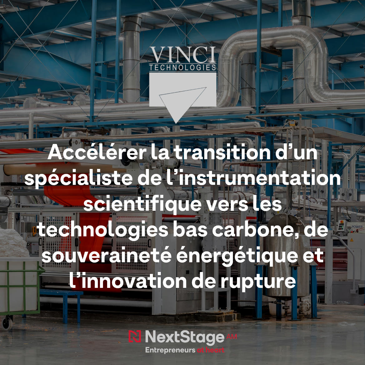 Chez NextStage AM, nous accompagnons Renaud Presberg et toute l’équipe de Vinci Technologies depuis 2018 dans une nouvelle phase de croissance, portée par les efforts de transition énergétique, la recherche de nouveaux procédés environnementaux et le développement de technologies souveraines.